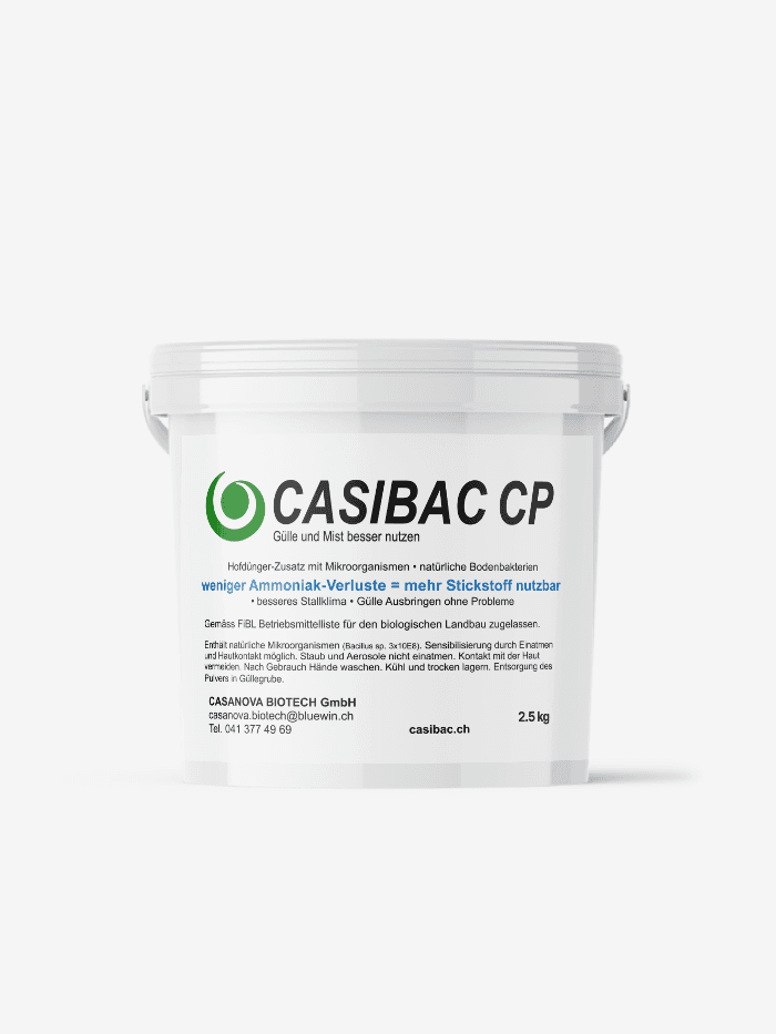 CASIBAC CP ist ein hochkonzentrierter biologischer Hofdüngerzusatz für die Aufbereitung von flüssiger Gülle und Schwemmkanälen.